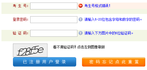 如忘記密碼,可利用“忘記密碼”功能進(jìn)行密碼重置,無法重置密碼的,普通類考生本人持準(zhǔn)考證原件和身份證原件到報(bào)名所在地的市縣招辦重置,對(duì)口、專升本考生本人持準(zhǔn)考證原件和身份證原件到就近市縣招辦重置;