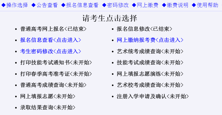 考生若忘記密碼請(qǐng)持身份證、信息確認(rèn)單或準(zhǔn)考證等到報(bào)名縣(市、區(qū))招生辦公室辦理相關(guān)手續(xù)。