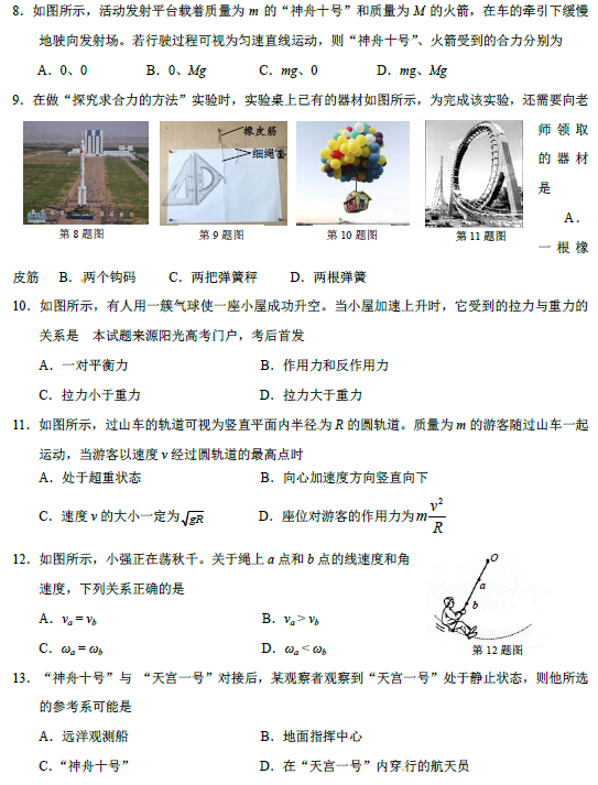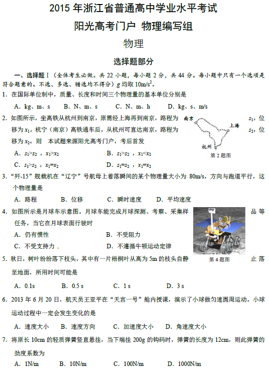 浙江省2015年1月高中學業(yè)水平考試物理試題及答案